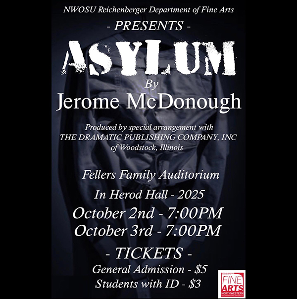 “Asylum” by Jerome McDonough is set to perform Oct 2 and 3 in Herod Hall at the Fellers Family Auditorium at 7 PM.