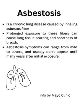 When asbestos fibers are breathed in, they may get trapped in the lungs and remain there for a long time.
